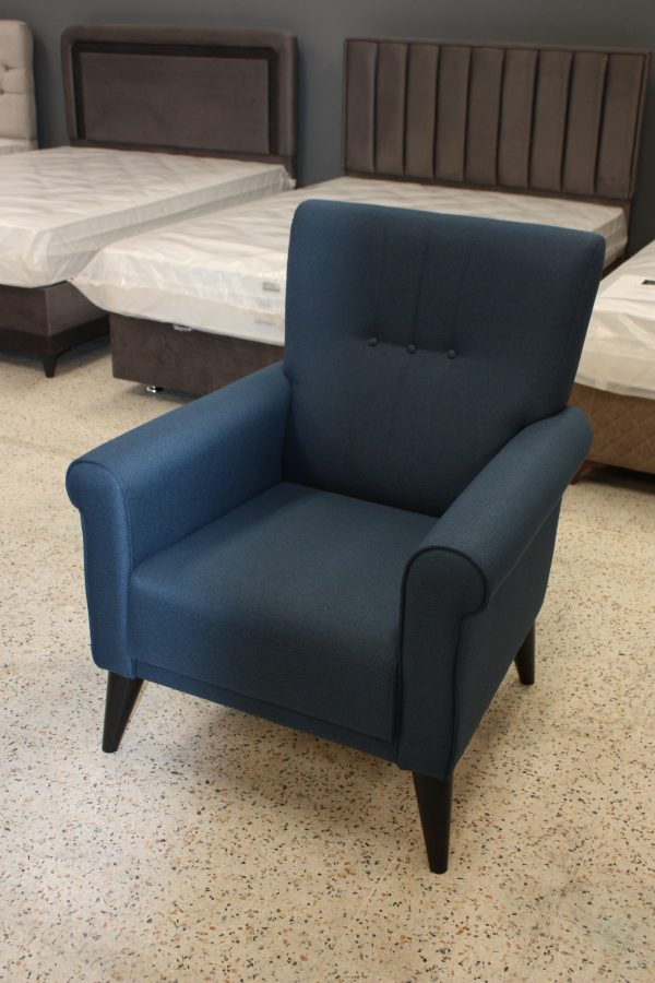 Upholstered in a touch, cyan shaded fabric, the Monde features a foam-filled seat and backrest offering plenty of comfort, whilst the slender, painted solid legs and curved armrests ensure this piece will look great in any home.
